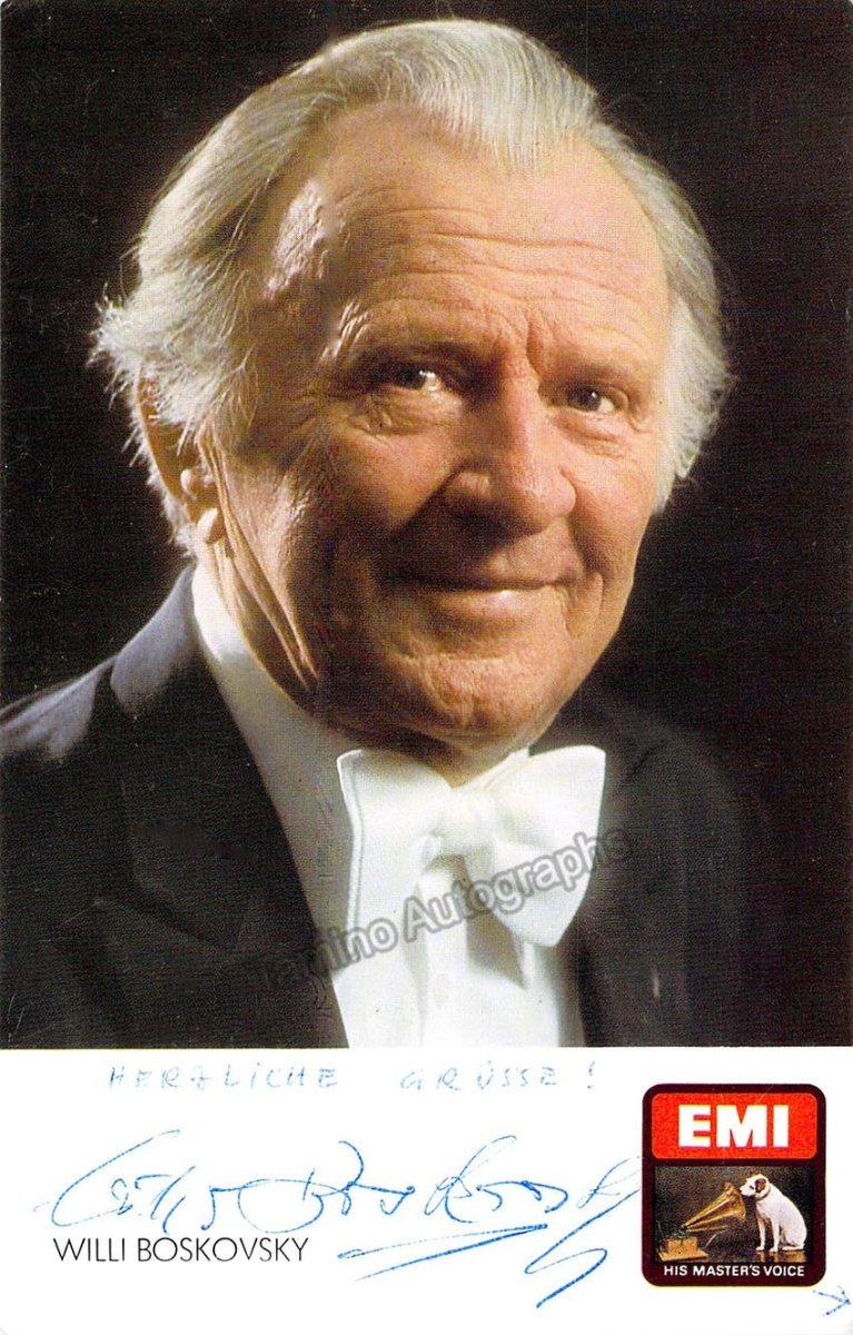 Austrian conductor and violinist (1909-1991), best known as the long-standing conductor of the Vienna New Year´s concert. Signed promo photo, with a short sentiment, 3.25 x 5.75 inches, in excellent condition.