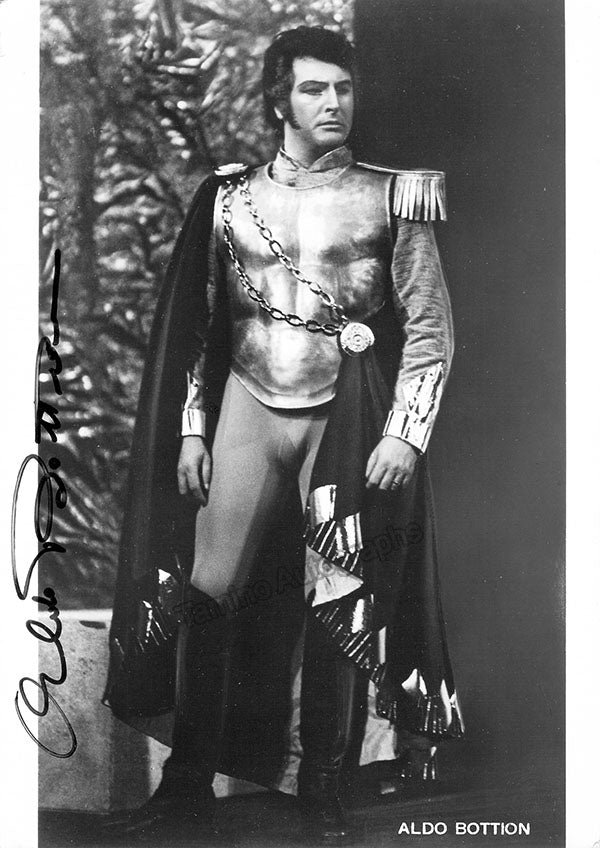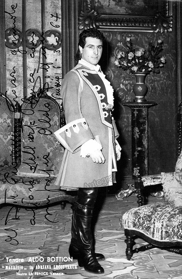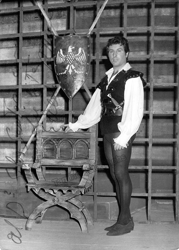 Signed photograph, shown as Maurizio in Cilea's Adriana Lecovreur at the Teatro La Fenice, Venice. Signed and inscribed in Venice, dated in 1967. tamped on verso by photographer Ermanno Reberschak, Venice. Size is 4.5 x 7 inches, in very good condition.