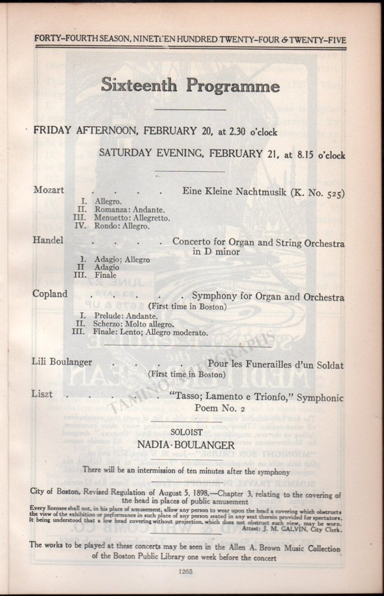 Boulanger, Nadia - Concert Program Boston Symphony 1925 - Tamino Boulanger, Nadia - Concert Program Boston Symphony 1925 - Tamino