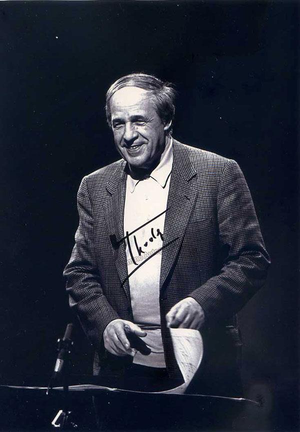 Famous French conductor (1925-2016), who was also composer, pedagogue and director, very influential in the intellectual contemporary scene, Olivier Messiaen disciple. Signed photo, shown at the podium. Size is 5 x 7 inches, in excellent condition.
