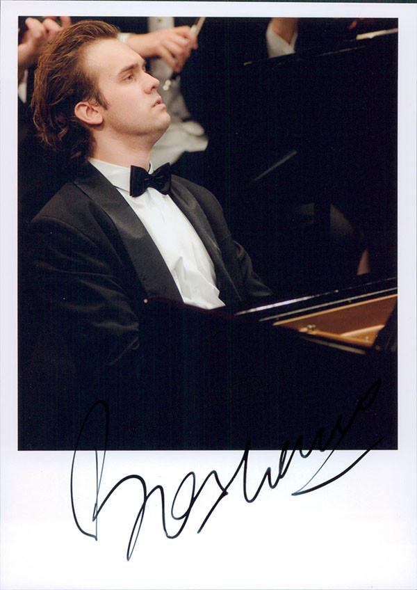 Bulgarian pianist (b. 1984), signed color photo, shown in performance. Size is 5 x 7 inches, in excellent condition.
