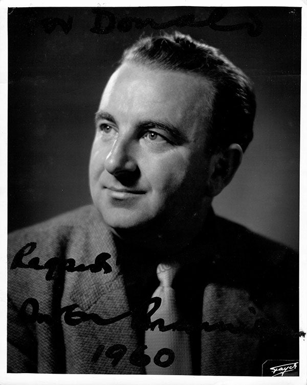 English bass (1908-1973), signed photograph, shown as himself, dated in 1960. Stamped on verso by Fayer photo studio, London. Size is 8 x 10 inches, small creases and bends, otherwise in very good condition.