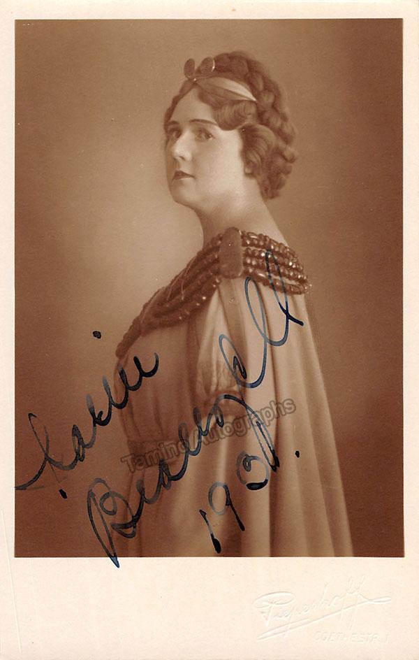 Swedish mezzo-soprano (1891-1974), signed photo postcard, shown as Fricka in Wagner's Der Ring des Nibelungen at the Bayreuth Festival, dated in 1931. Blind stamped by photographer A. Pieperhoff, Bayreuth.  Size is 3.5 x 5.5 inches with mounting traces on verso but otherwise in very good condition.