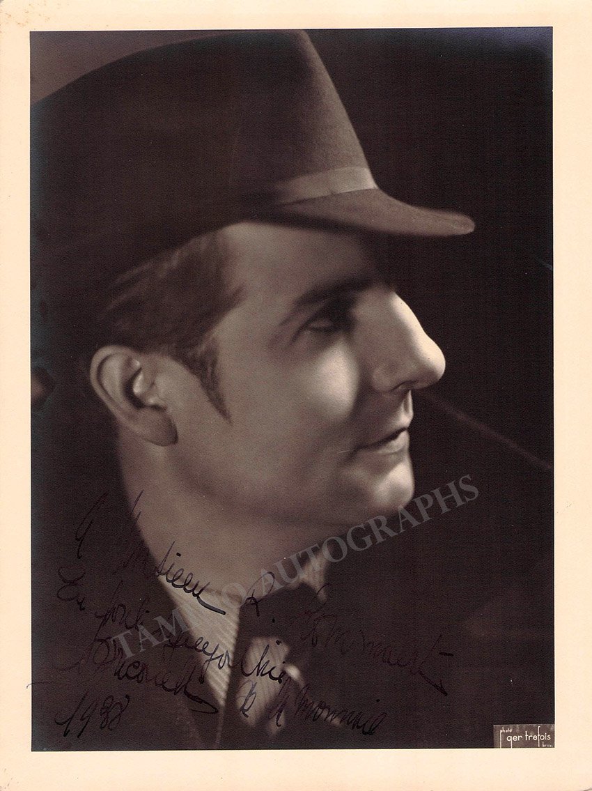 Belgian tenor (1905-1962), large signed photo, shown as himself. Inscribed. Blind stamped by photographer Roger Trefois, Brussels. Size is 7 x 9.25 inches, in excellent condition.