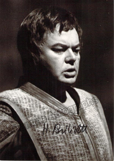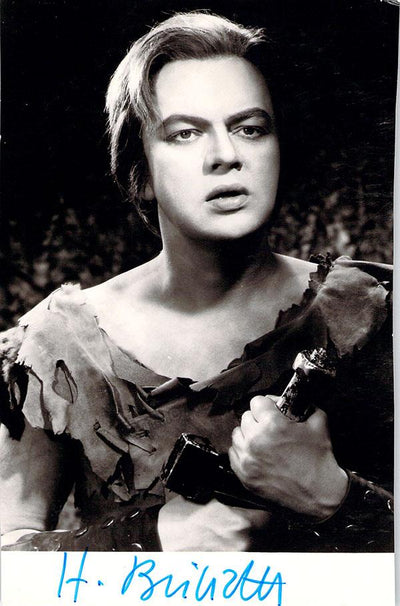 Signed photo postcard, shown as Siegfried in Wagner's Die Gotterdammerung at the 1970 Salzburg Festival. Size is 3.75 x 5.75 inches with slight crease on top and bottom right but otherwise in excellent condition.