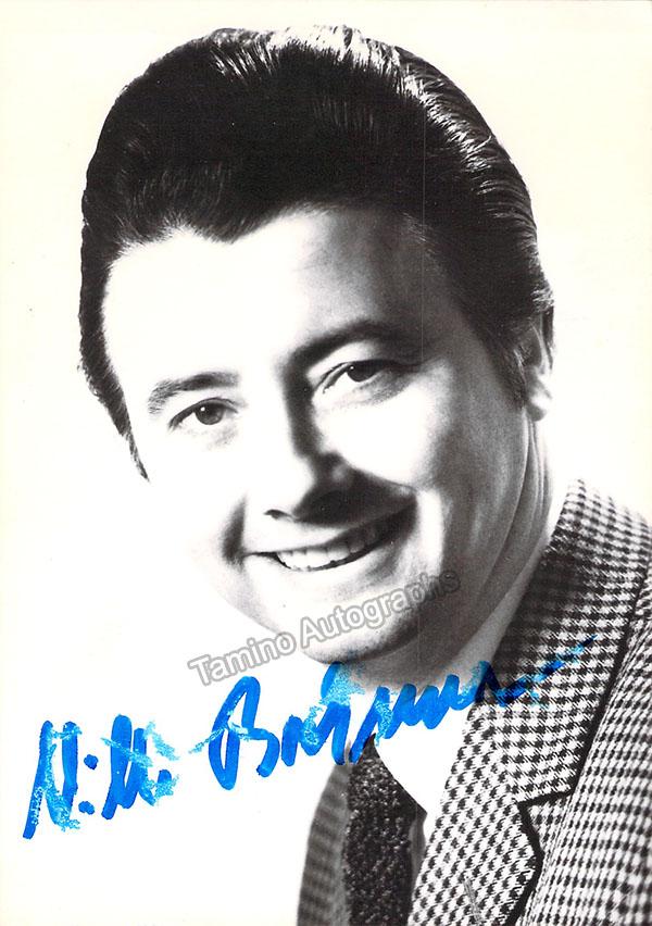 German tenor (b. 1928), signed photo, shown as himself. Signature on front with inscription and additional signature on verso. Size is 4 x 5.75 inches, in excellent condition.
