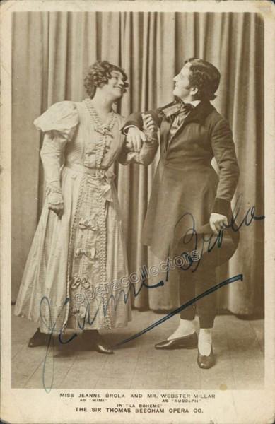 Signed photo postcard of the American soprano (1871-1956), shown as Mimi in La Boheme with Webster Millar as Rodolfo at the Thomas Beecham Opera company. Size is 3.5 x 5.5 inches, in very good condition