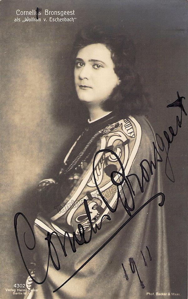 Dutch bass-baritone (1878-1957).  Signed photo postcard, shown as Wolfram von Eschenbach in Wagner's Tannhauser, dated in 1911. Vintage photo by Becker and Maas, Berlin. Size is 3.5 x 5.5 inches, in excellent condition.