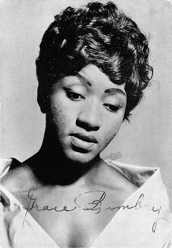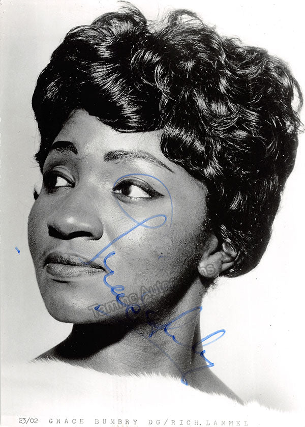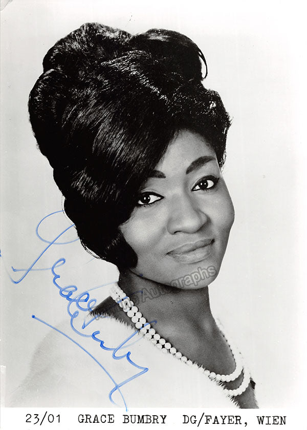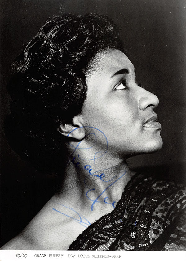 Beautiful black-and-white photo portrait of her by Fayer (Vienna) signed by Bumbry, shown young. Size is 5 x 7 inches, in excellent condition.