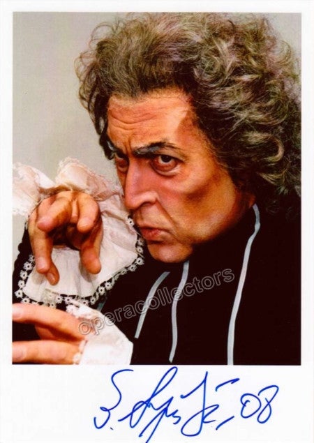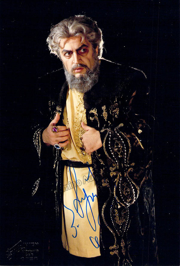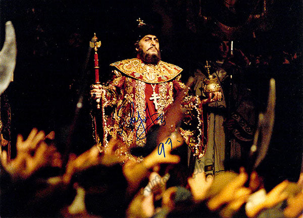 Signed photograph, shown in the title role of Mussorgsky's Boris Godunov, dated in 1997. Photo by Axel Zeininger. Size is 5 x 6.75 inches, in excellent condition.