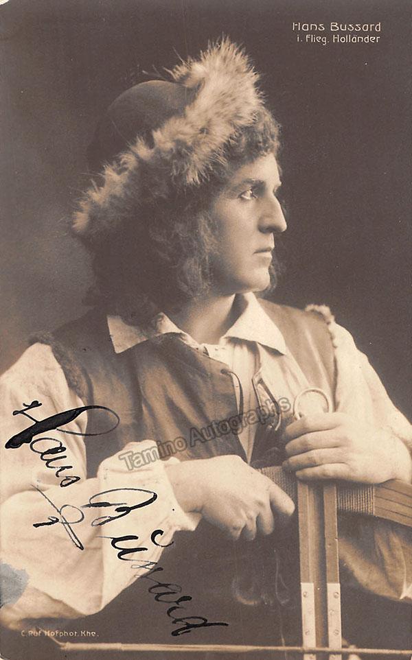 German tenor and later actor (1863-1946), signed photo postcard, shown as Erik in Wagner's Fliegende Hollander. Size is 3.3 x 5.4 inches, in very good condition.
