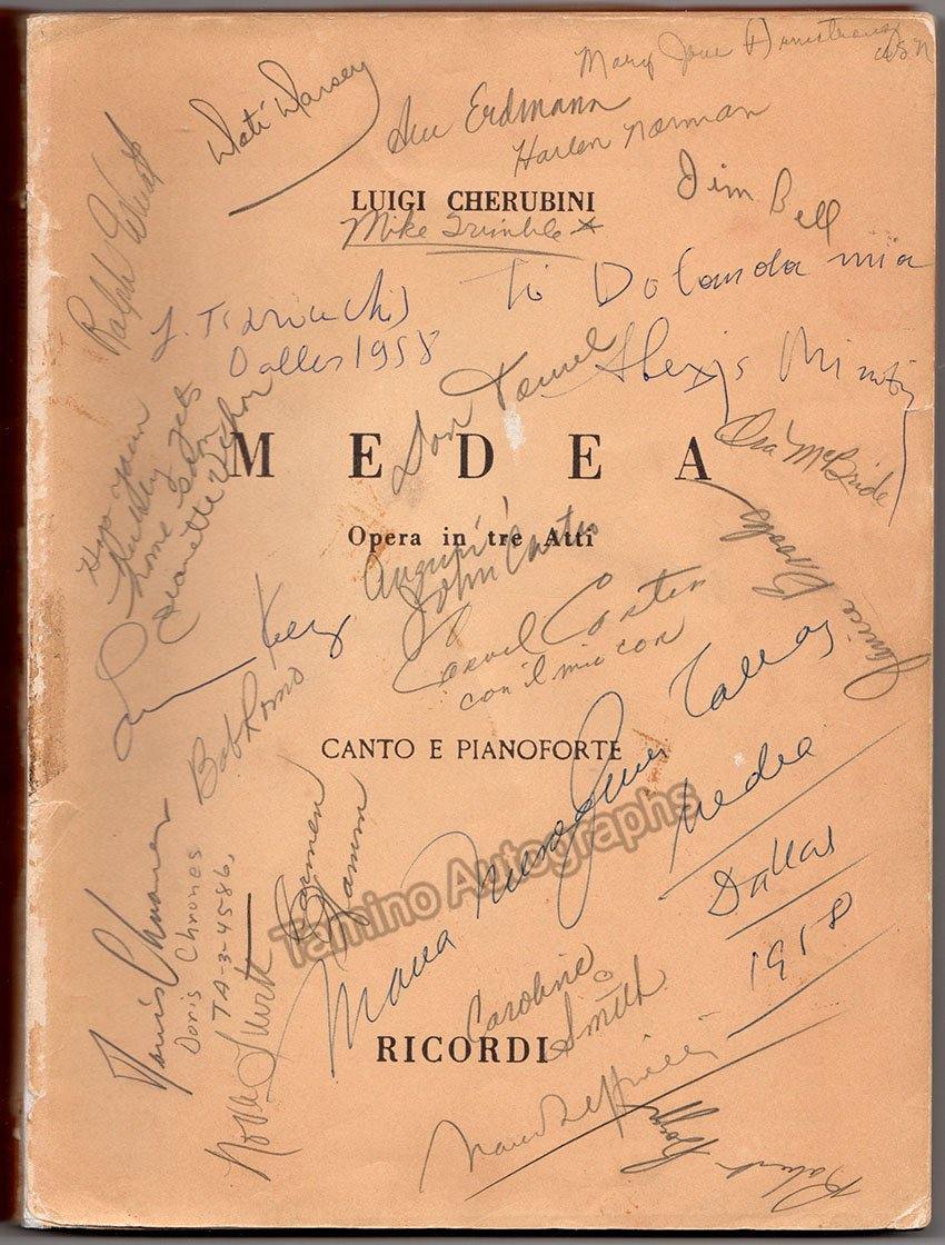 Wonderful printed score of "Medea" (Cherubini) for voice and piano, signed by many of the singers in the performance of this opera in Dallas, 1958.