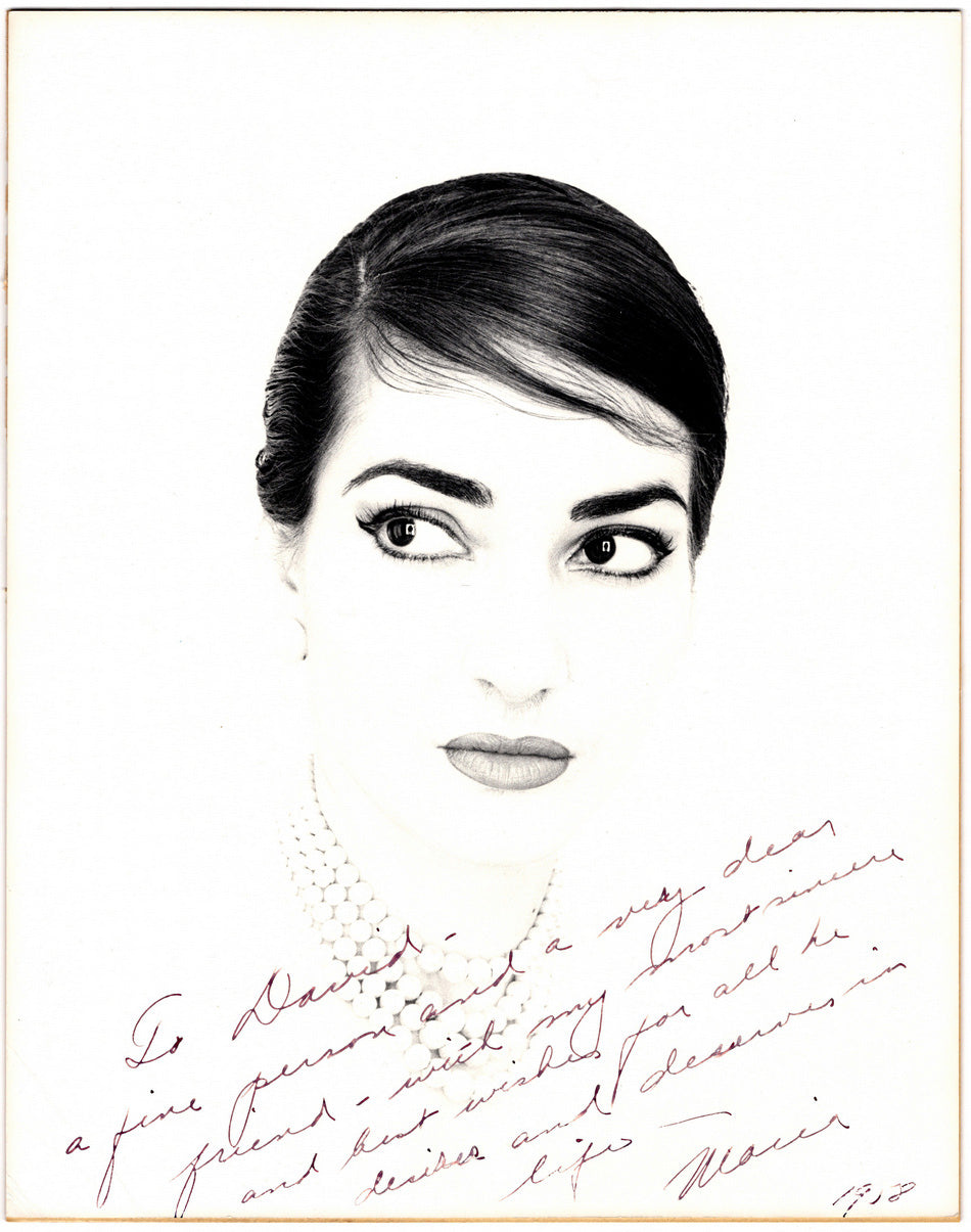 Large photograph, inscribed, with a long sentiment to a friend (a TV broadcaster in Dallas, Texas), authentically signed by Callas as Maria.