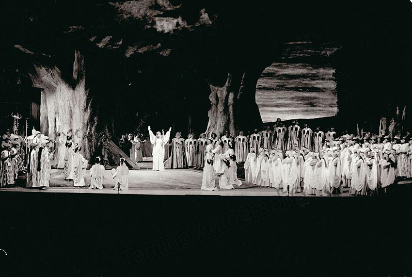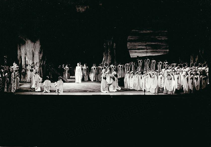 Group of 6 photos of taken during Maria Callas' performance in the title role in Norma, at Teatro La Scala, Milan, season 1955-56. Each one is 15.75 x 10.75 inches, stamped on verso by photographer Erio Piccagliani, Teatro La Scala. These are enlargements made by the theater, made from either smaller prints or negative. Minor wear on borders, otherwise in very good condition. Sold as a lot only.