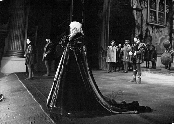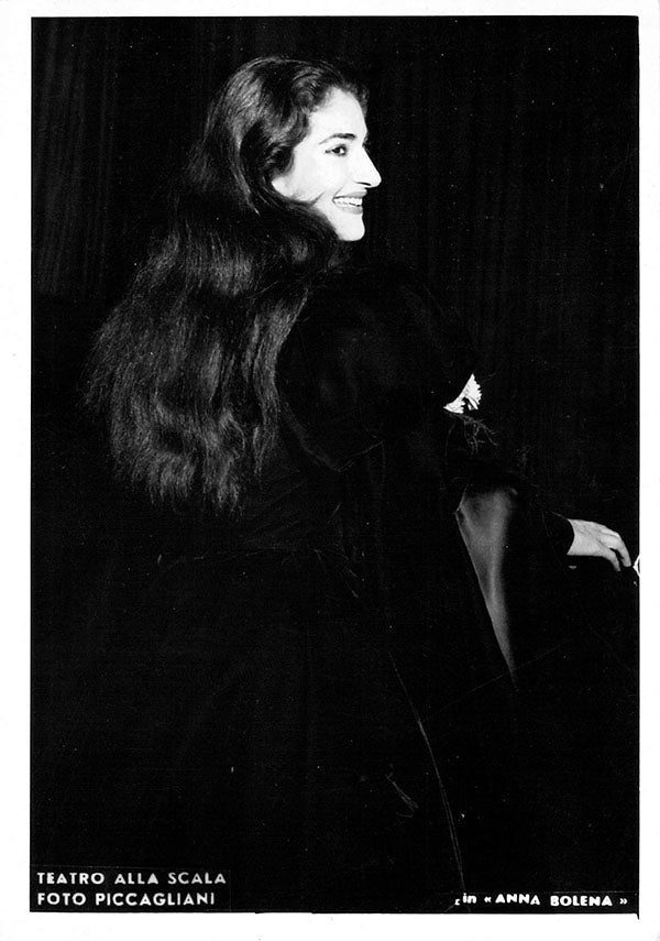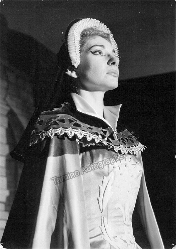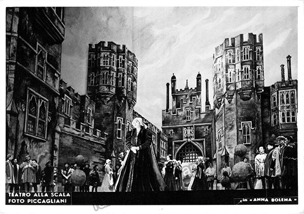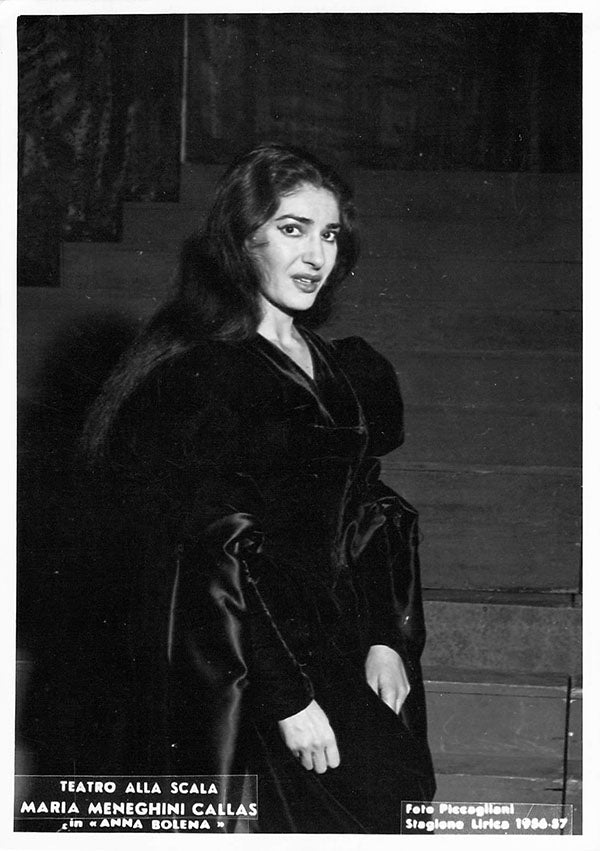 Greek-American superstar soprano (1923-1997), lot of 7 unsigned postcard photographs, each from La Scala, Milan and shown in the title role of Donizetti's Anna Bolena, one also featuring the great Italian mezzo-soprano Giulietta Simionato. All of the seven are by photographer E. Piccagliani, La Scala, Milan, five of them are stamped on verso by him. Most are 4 x 5.75 inches, all are in excellent condition. SOLD ONLY AS A LOT, NOT SOLD SEPARATELY.