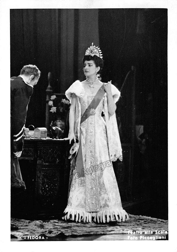 Group of 8 photo postcards depicting Callas in rehearsal, glamour photos, and in La Traviata, Fedora and Il Turco in Italia. Each one is approx. 4 x 5.75 inches, not stamped by photographer on verso, in excellent condition. Not sold individually.
