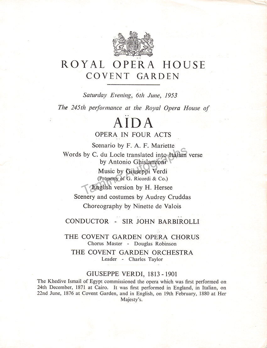 Callas, Maria - Signed Program Aida at Covent Garden 1953