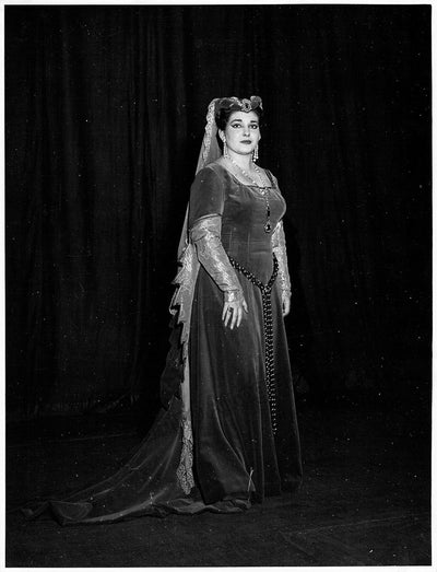 Greek-American superstar soprano (1923-1997), unsigned photos, mostly from La Scala, several from Royal Opera, Covent Garden. Each one is stamped on verso by photographer.