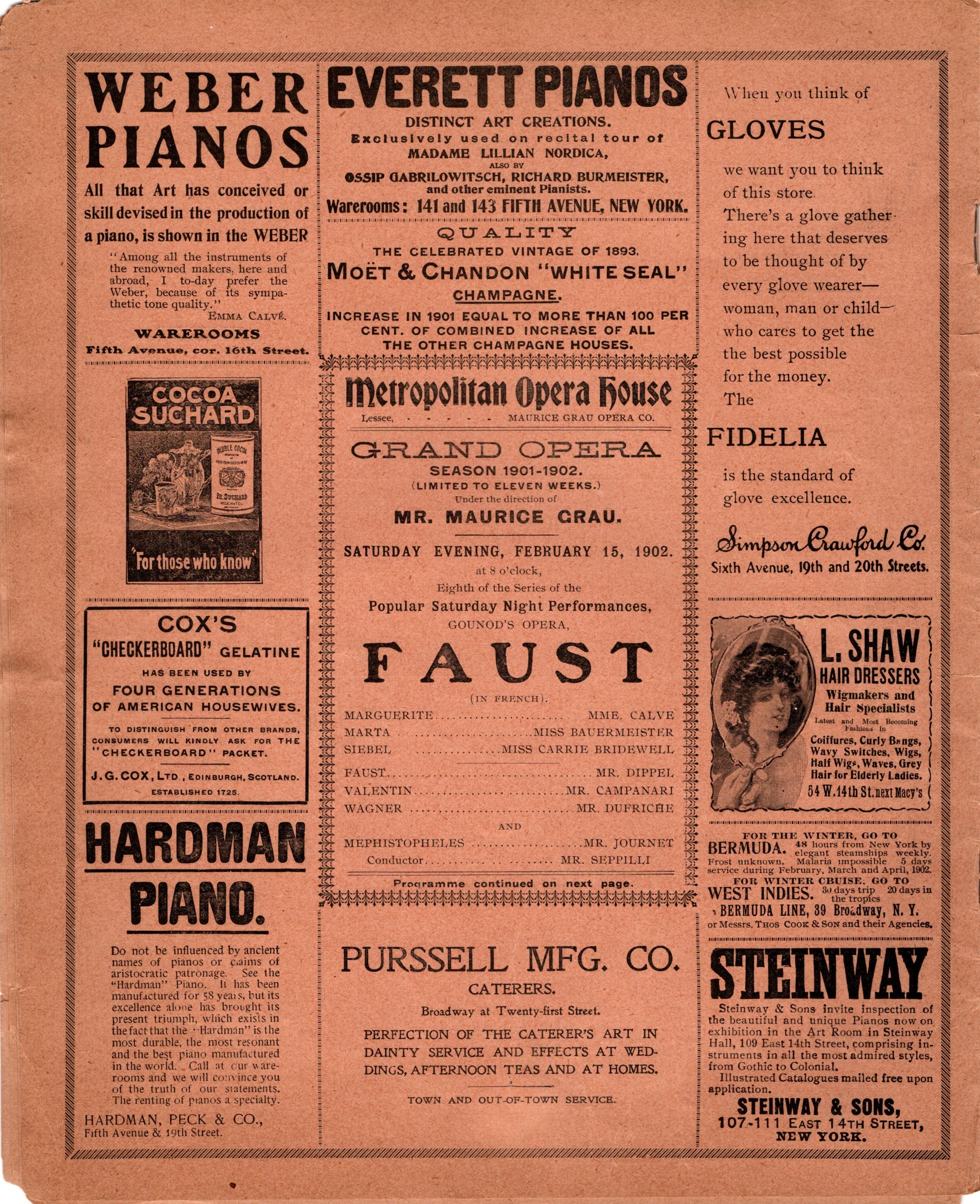 Calve, Emma - Dippel, Andreas - Met Opera Program Faust 1902 Calve, Emma - Dippel, Andreas - Met Opera Program Faust 1902 Calve, Emma - Dippel, Andreas - Met Opera Program Faust 1902