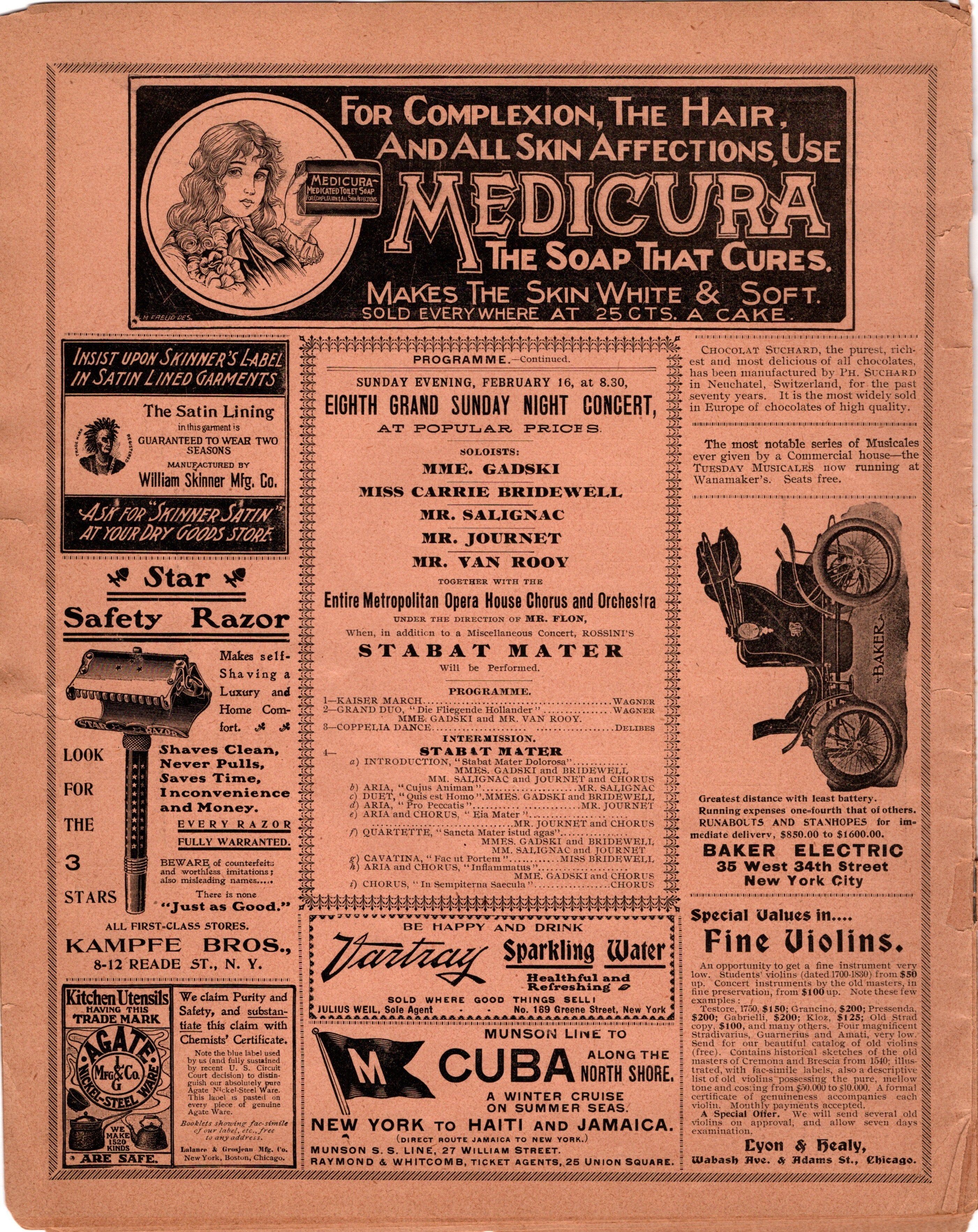 Program for a performance of Gounod's "Faust" at The Metropolitan Opera, New York, on February 15, 1902, featuring Emma Calvé, Andreas Dippel, Giuseppe Campanari, and others, under the baton of Armondo Seppilli.