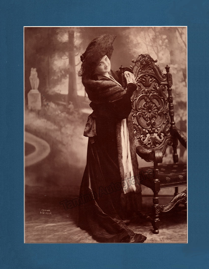 Large unsigned photo cabinet style, imperial size (12 x 14.25 inches), matted to an overall size of 14 x 17.25 inches, shown as herself. Original photo was trimmed at the bottom but this is unnoticeable since the cut is hidden under the mat.