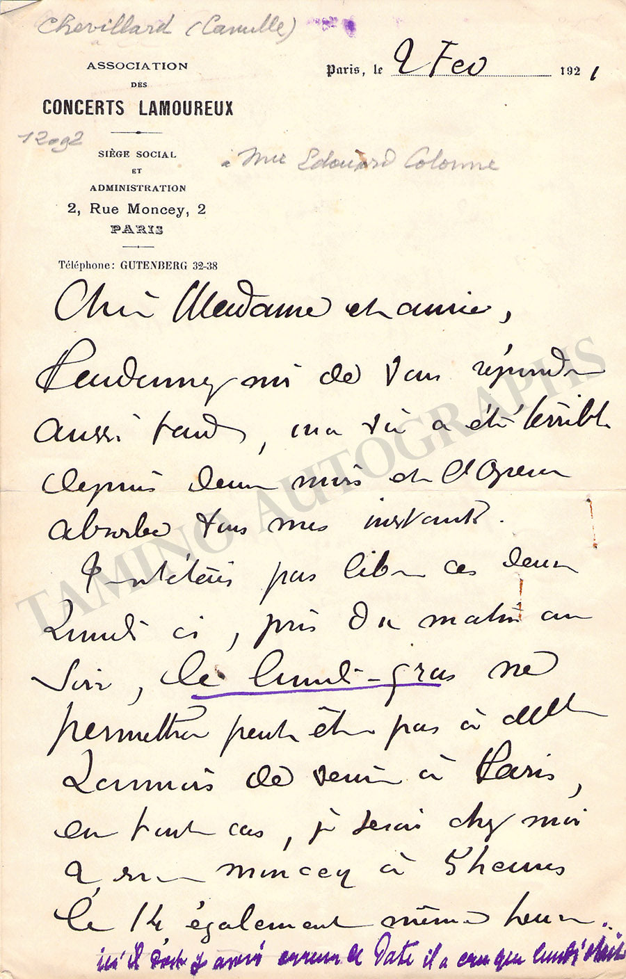 Chevillard, Camille - Autograph Letter Signed 1921 Chevillard, Camille - Autograph Letter Signed 1921