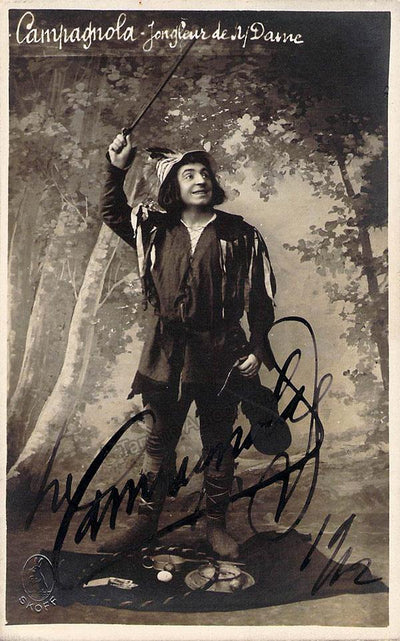 Signed photo, shown in Le Jongleur de Notre Dame, in 1908. Size is 3.5 x 5.5 inches.