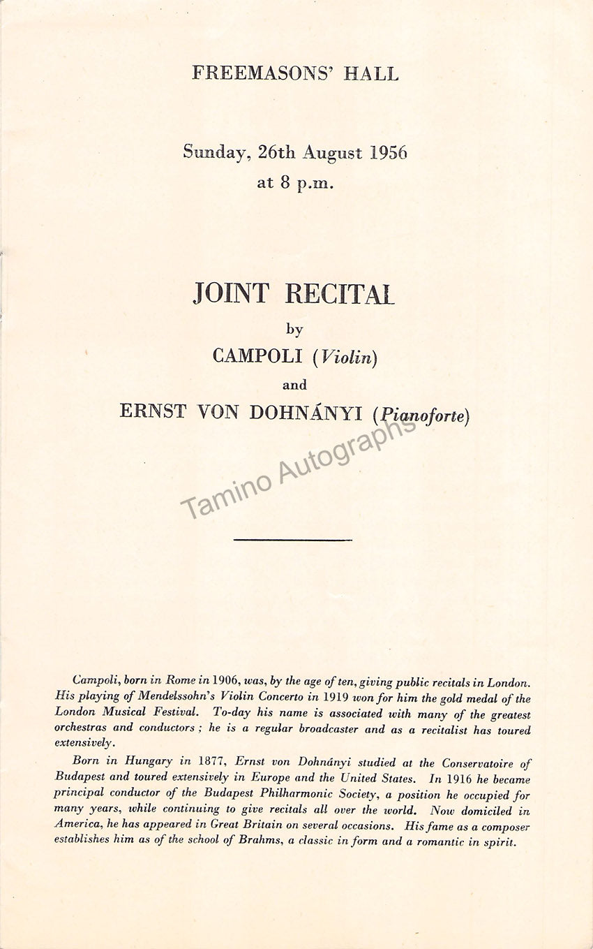 Campoli, Alfredo - Dohnanyi, Ernst von - Double Signed Program Edinburgh 1956