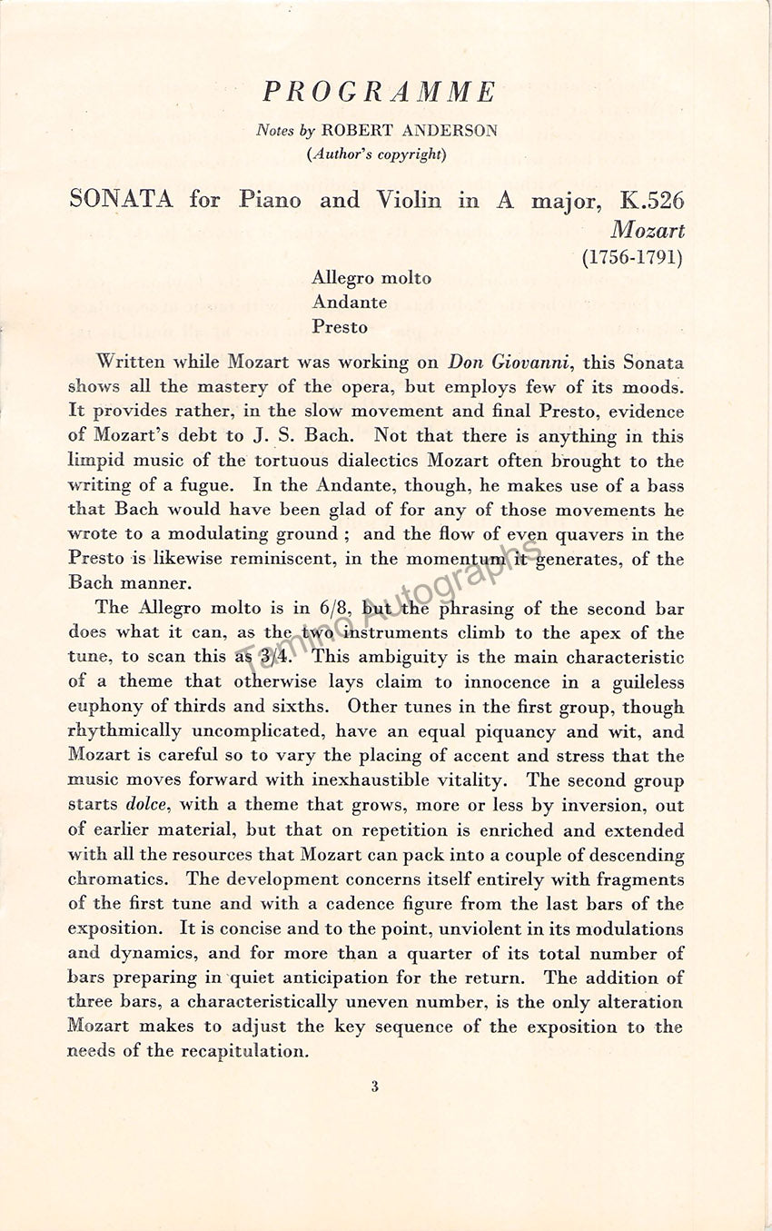 Program for a performance of the Italian-born British violinist and the Hungarian composer and pianist at the Freemasons' Hall, Edinburgh, on August 26th, 1956, signed by both artists on the front cover.