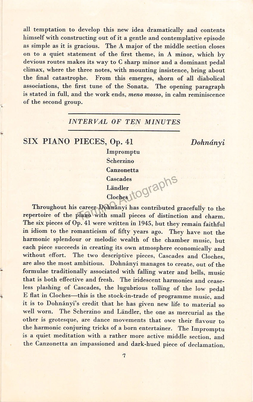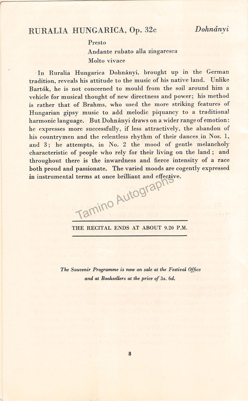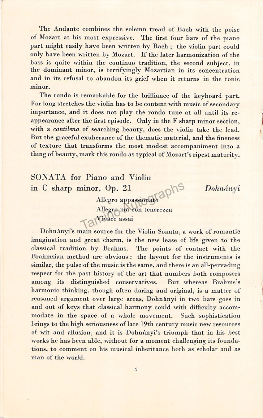 Alfredo Campoli - Ernst von Dohnanyi Autographs Program 1956
