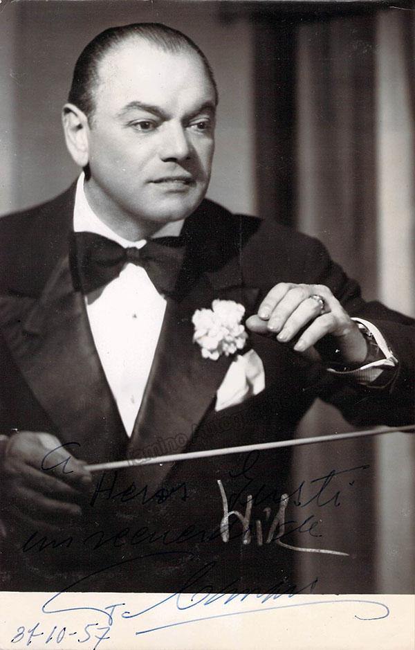 Great black and white photograph shown in performance, signed and inscribed by him, dated in 1957.  Photograph is ink-stamped on verso by photographer Wilenski, Buenos Aires.  Size is 4.5 x 7.1 inches, mounting traces on verso, in very good condition.