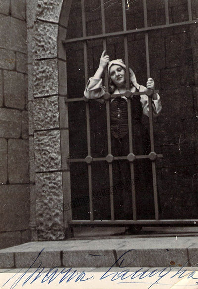 Signed postcard photograph, shown in role in Bellini's La Staniera at Teatro La Scala. Bold handwriting and signature. Photo by Paganini, Milan. Size is 3.5 x 5.25 inches, mounting traces on verso, otherwise in excellent condition.