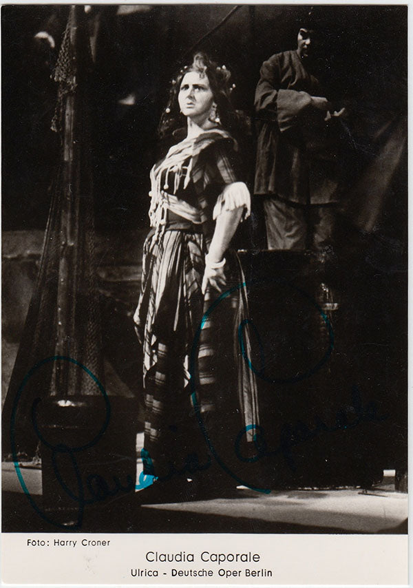 Canadian mezzo (b. 1931), signed postcard photograph, shown as Ulrica in Verdi's Ballo in Maschera at the Deutsche Opera, Berlin. Photo by Harry Croner. Size is 4 x 5.75inches, small ink marks on verso, otherwise in excellent condition.