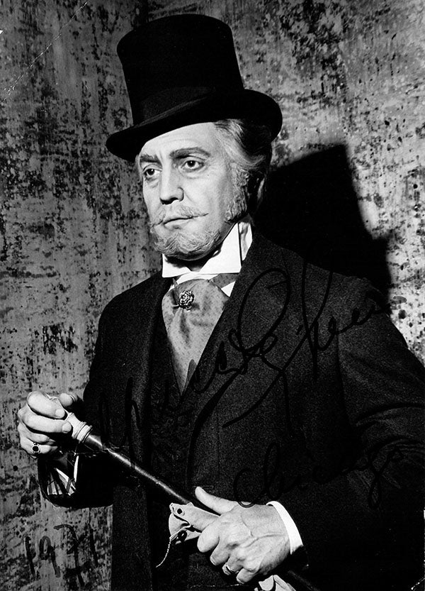 Signed photograph, shown as Germont in Verdi's La Traviata, signed in Chicago, dated in 1971. Stamped on verso by photographer David H. Fishman. Size is 6.75 x 9.25 inches, small creases on edges, otherwise in good condition.