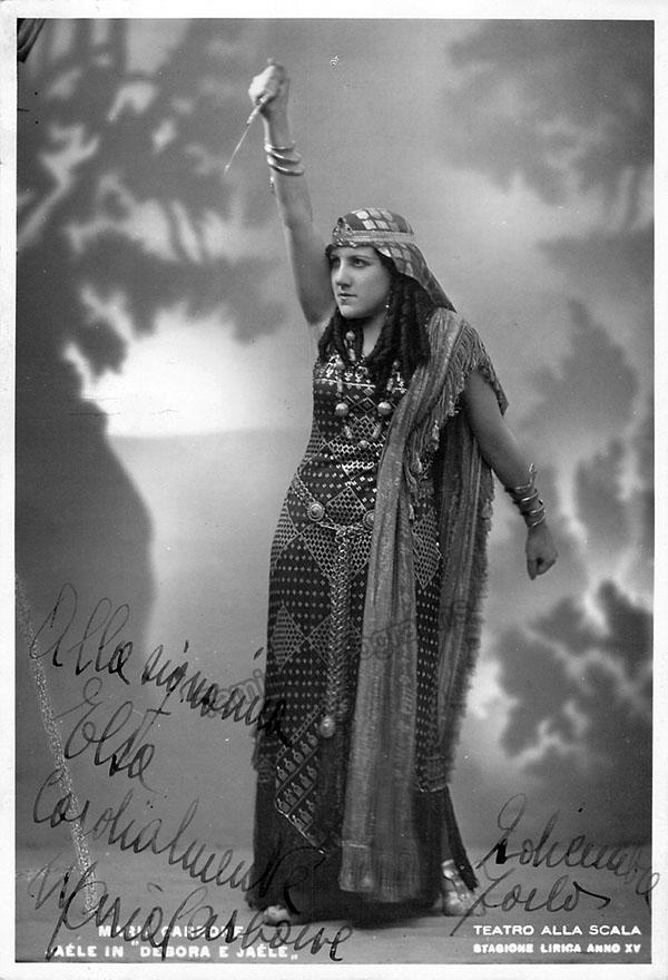 Signed photo, shown in role in Debora e Jaele, opera by Ildebrando Pizzetti. Size is 4 x 6 inches, in excellent condition.