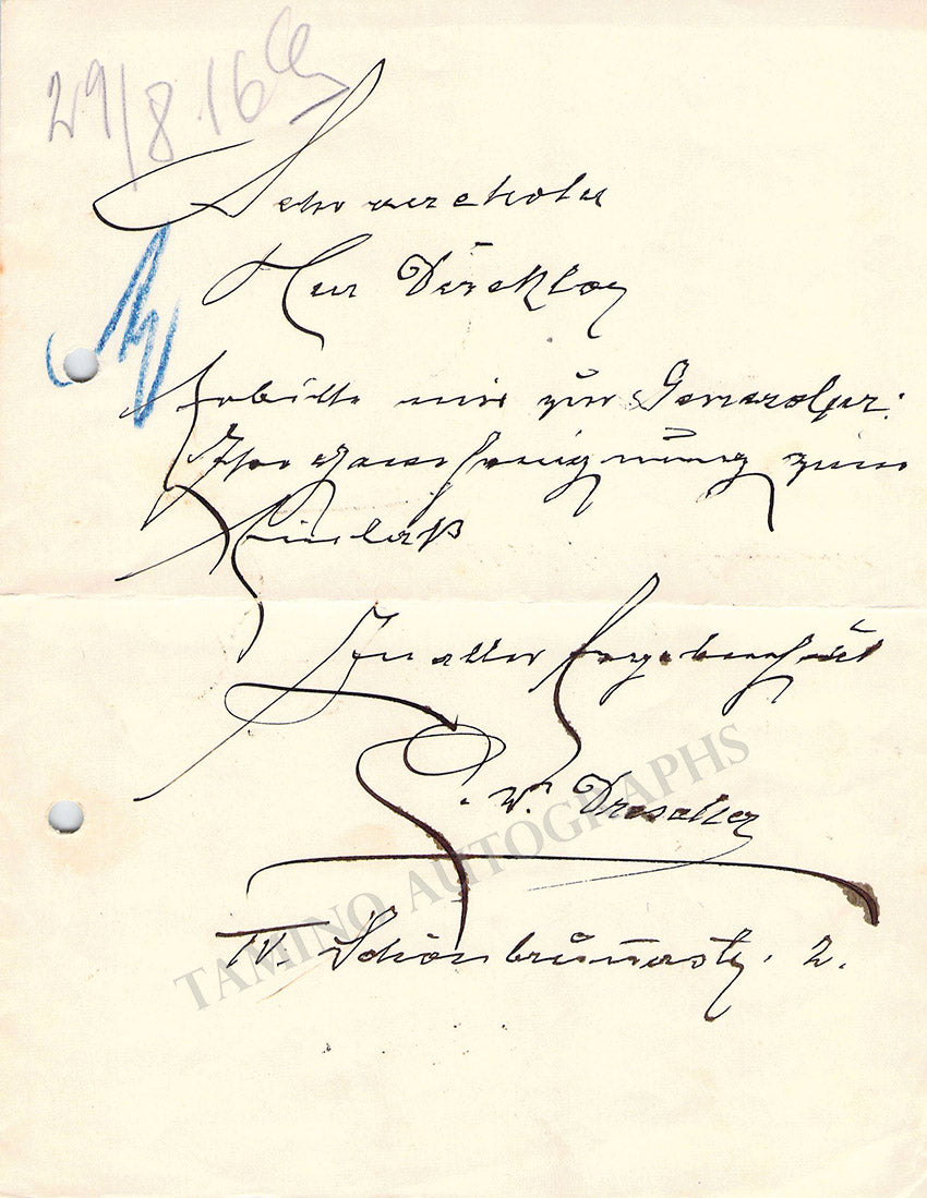 Drescher, Carl Wilhelm - Autograph Music Quote Signed 1915 Drescher, Carl Wilhelm - Autograph Music Quote Signed 1915