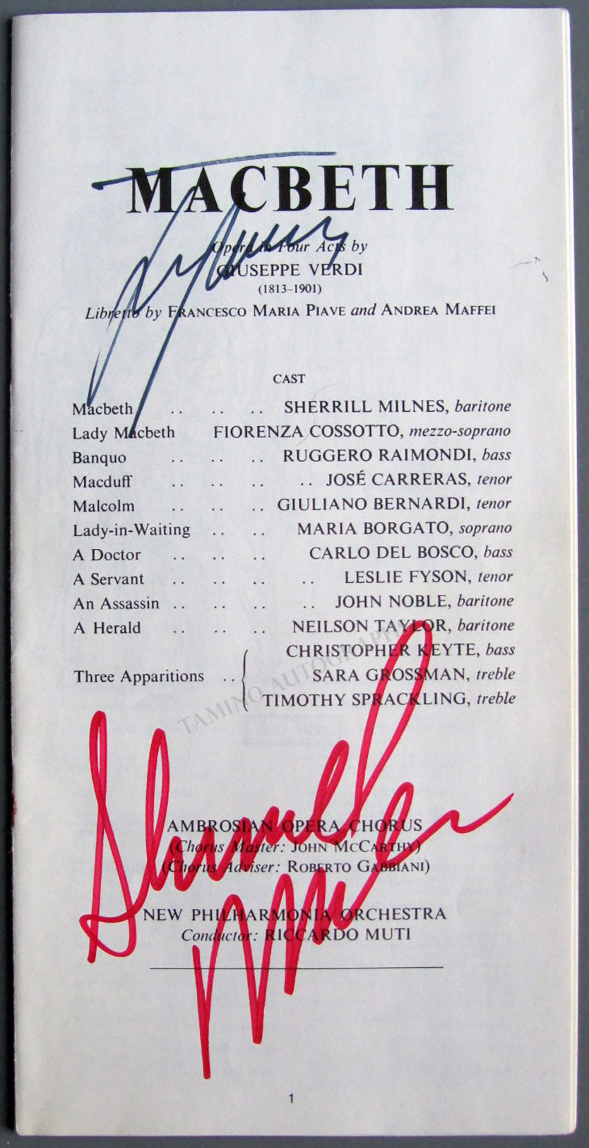 Booklet for a recording of Macbeth, signed by star tenor Jose Carreras and baritone Sherrill Milnes