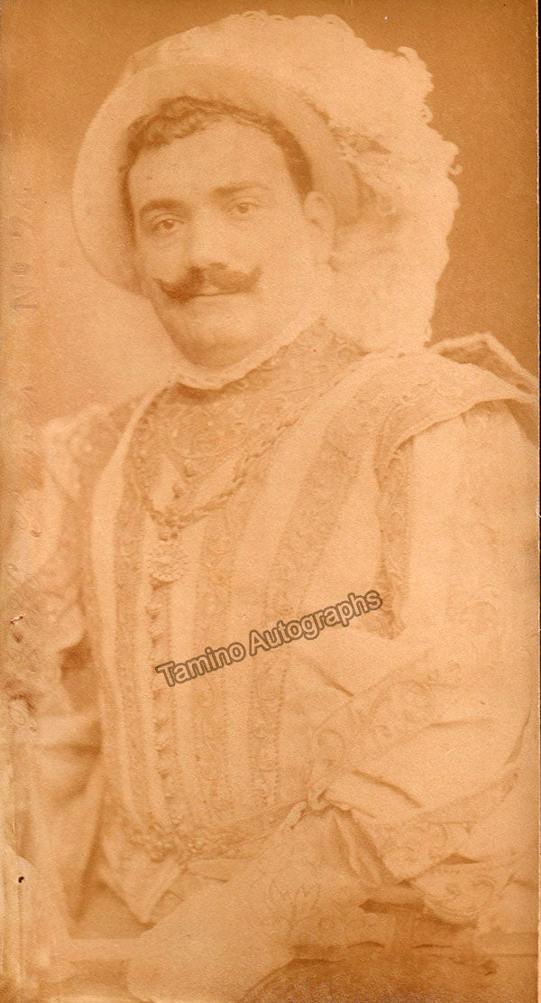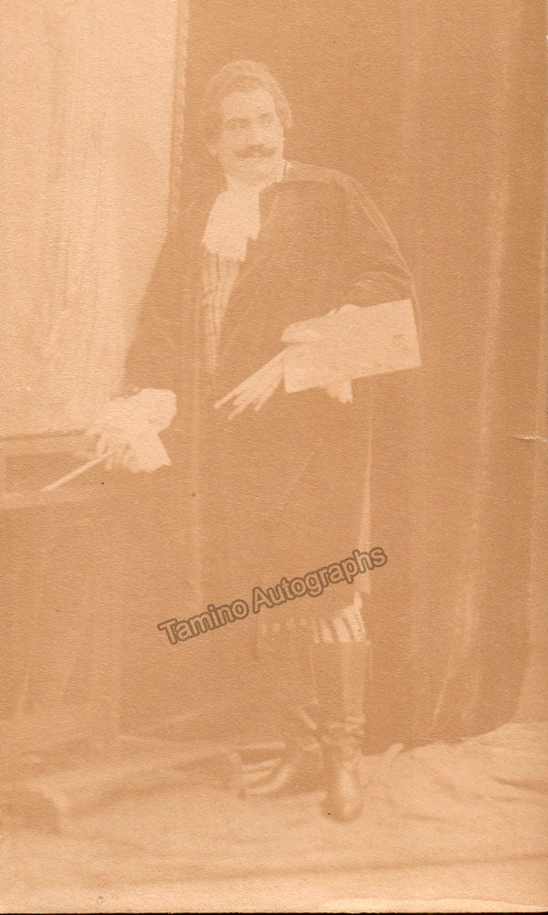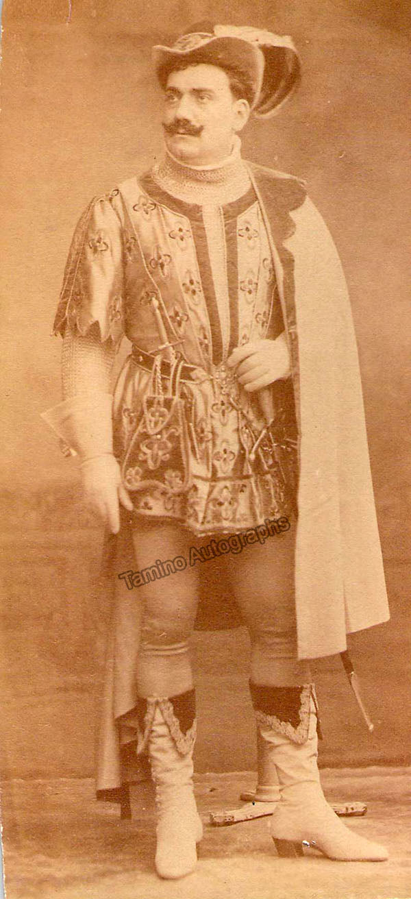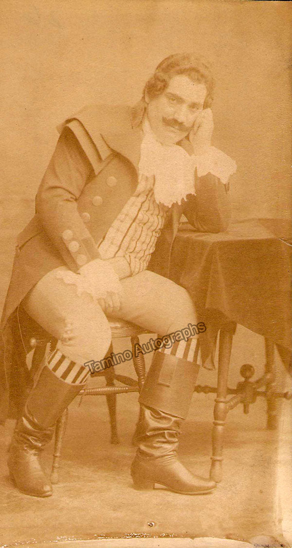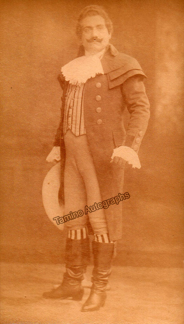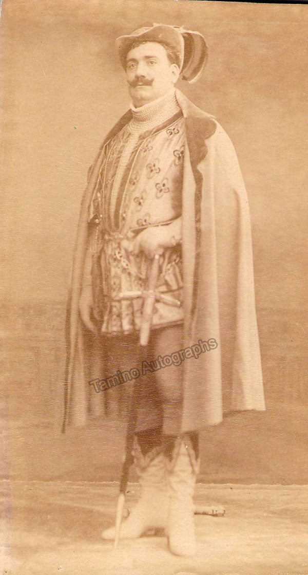 Unsigned cabinet-style photo, shown as the Duke of Mantua in Verdi's Rigoletto. Size is 3.25 x 6 inches, mounting traces on verso, otherwise in very good condition.