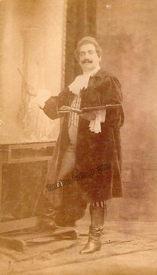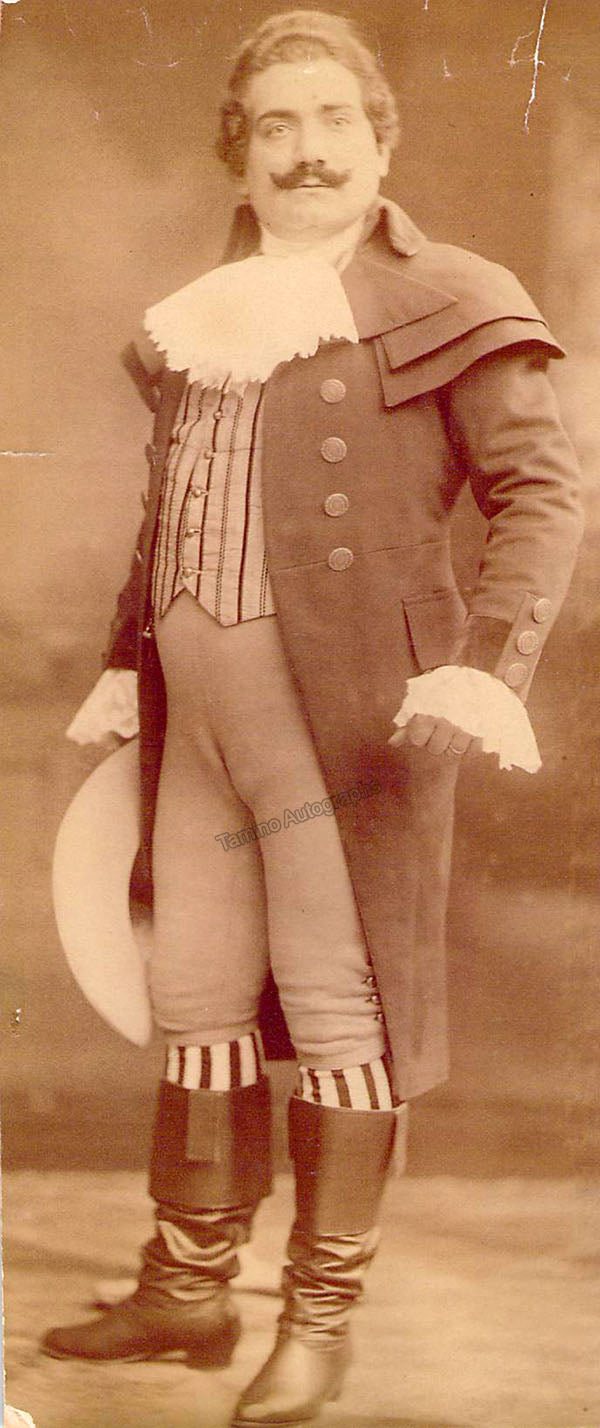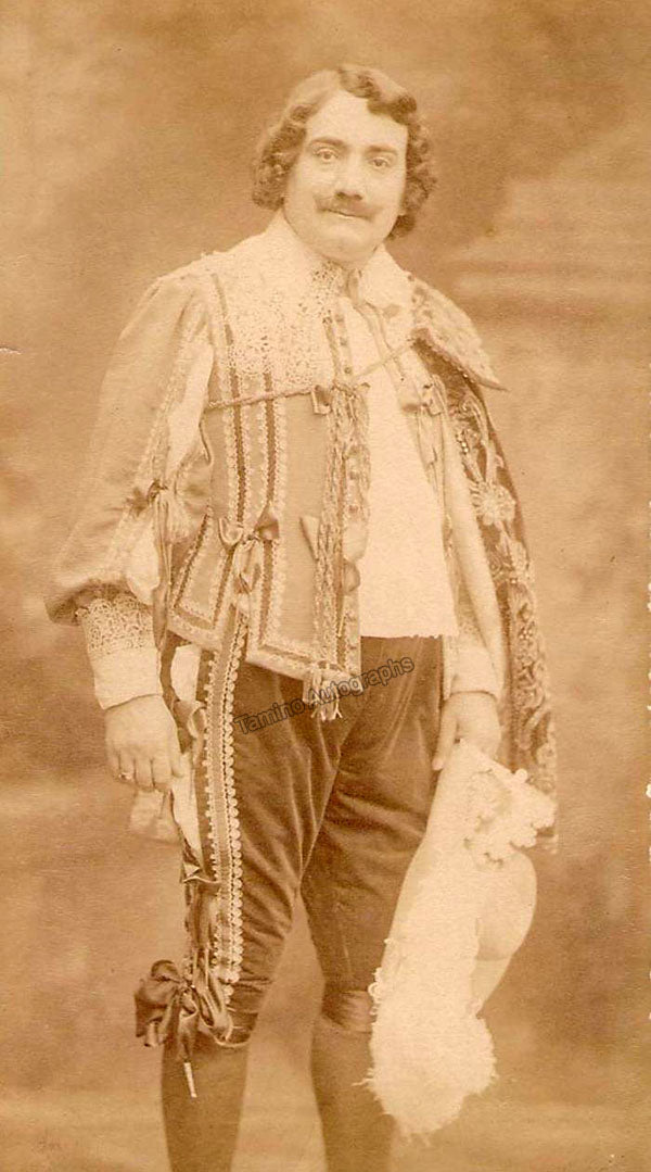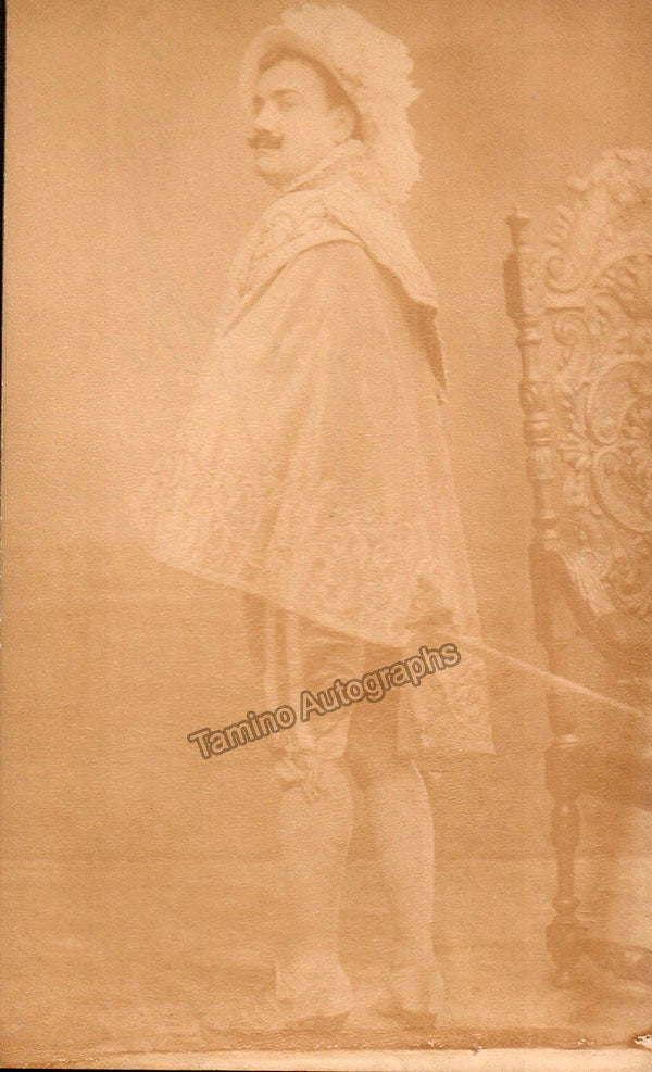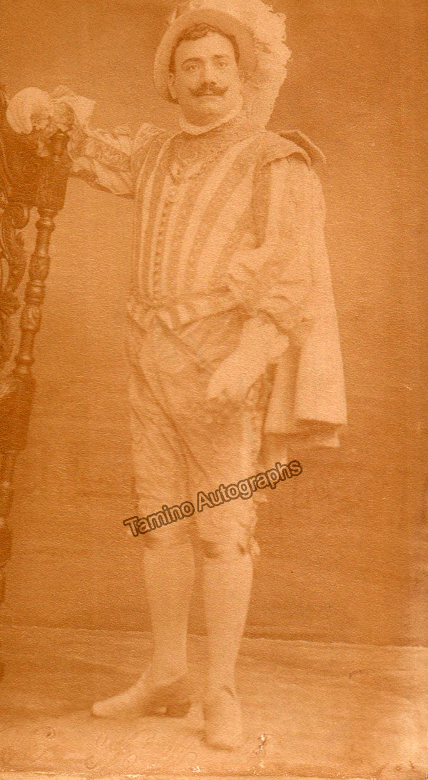 Unsigned cabinet-style photo, shown as the Duke of Mantua in Verdi's Rigoletto. Size is 3.25 x 6 inches, mounting traces on verso, otherwise in very good condition.