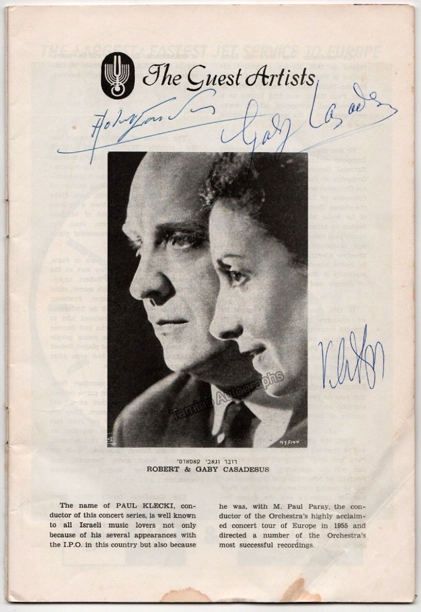 Concert program with the Israel Phil Orchestra, season 1960-61, Robert and Gaby Casadesus play Mozart concerto for 2 pianos, Paul Klecki conducted. Signed by both pianists on the first page, and by the conductor in the last page. Full program, size is 6.5 x 9.5 inches