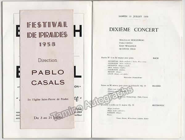 Full program with all pages and covers for the Festival de Pradés, France, July 3rd through 21st, 1958, with a total of 12 concerts, including some famous performers: Pablo Casals, Paul Szabo, Yehudi Menuhin, Alfred Cortot, Wilhelm Kempff, Sandor Vegh, and many others.