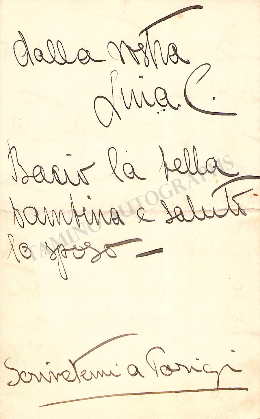 THE "TAMINO AUTOGRAPHS" semi-transparent legend over the pictures shown here does not exist in the actual item.
