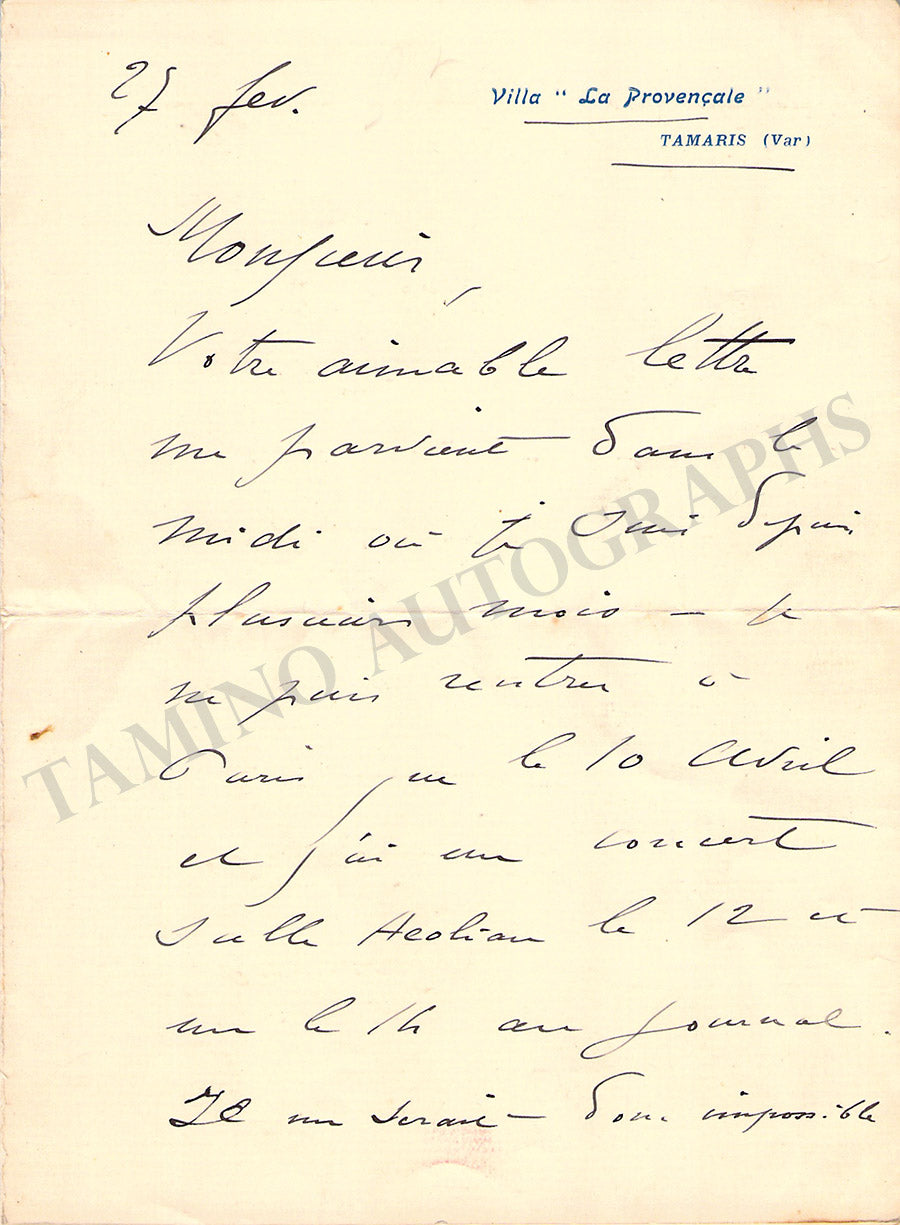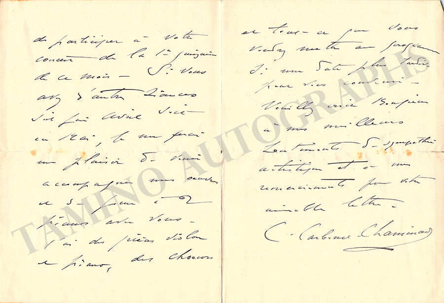Chaminade, Cecile - Autograph Letter Signed Chaminade, Cecile - Autograph Letter Signed