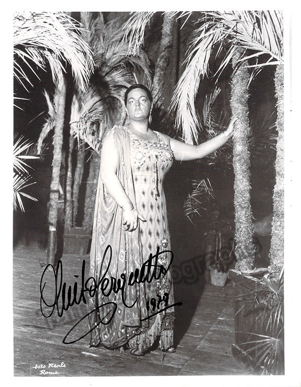 Signed photo of the dramatic Italian soprano (1931-2014), shown in the title role in Aida in Rome. Size is 8 x 10 inches, in excellent condition.