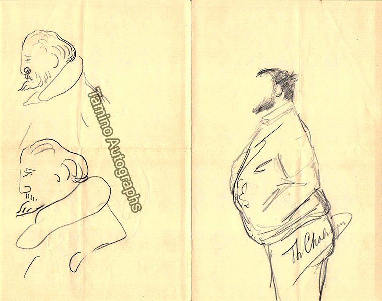 Star Russian bass (1873-1938), 3 etchings of him possibly in role as well as himself.  4 folded pages, caricatures are on 2 of the pages, each page is 5.25 x 8.25 inches, vintage historic item, in excellent condition.