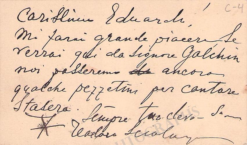 Personal card with his printed name, with a short greeting hand-written in Italian.  Size is 4 x 2.4 inches, in excellent condition.