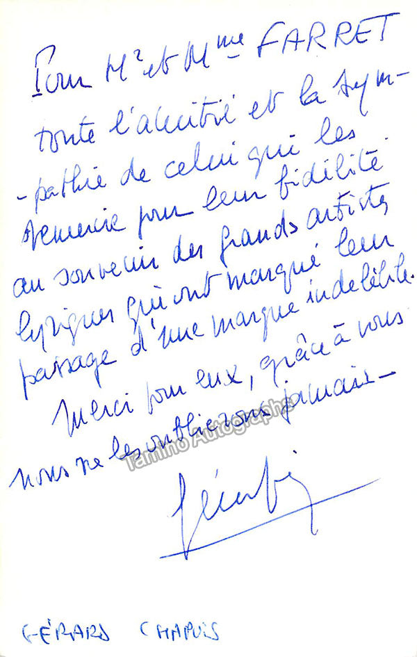 French bass (b. 1931), signed photograph, shown as himself, signed and inscribed with extensive sentiment on verso. Size is 3.5 x 5.5 inches, in excellent condition.