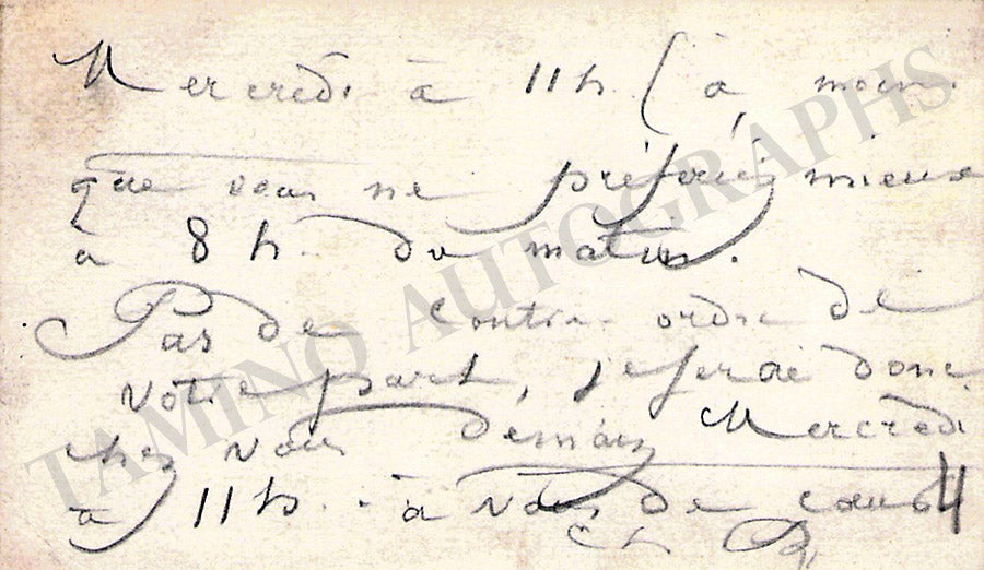 Set of 5 autograph visiting cards (not signed by him but with a short text written by him). Each one's size is 3.75 x 2.2 inches, in very good condition.