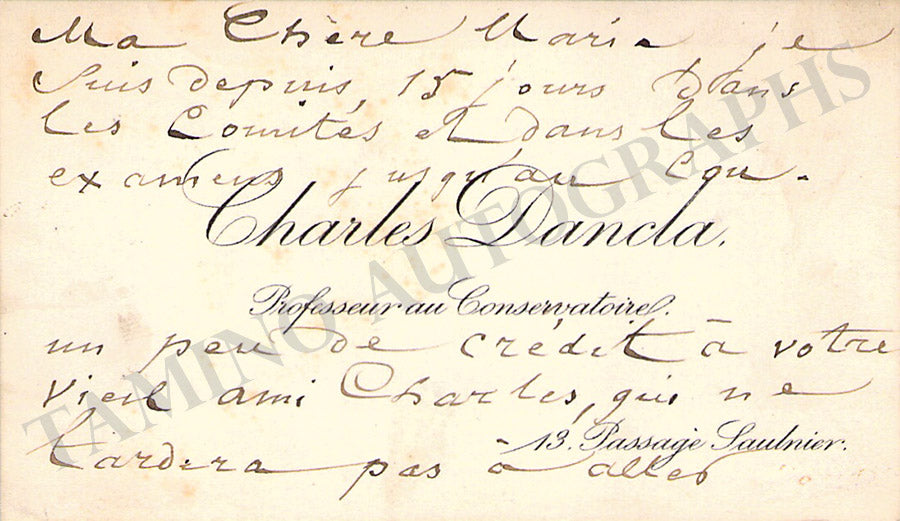 Dancla, Charles - Set of 5 Autograph Visiting Cards
