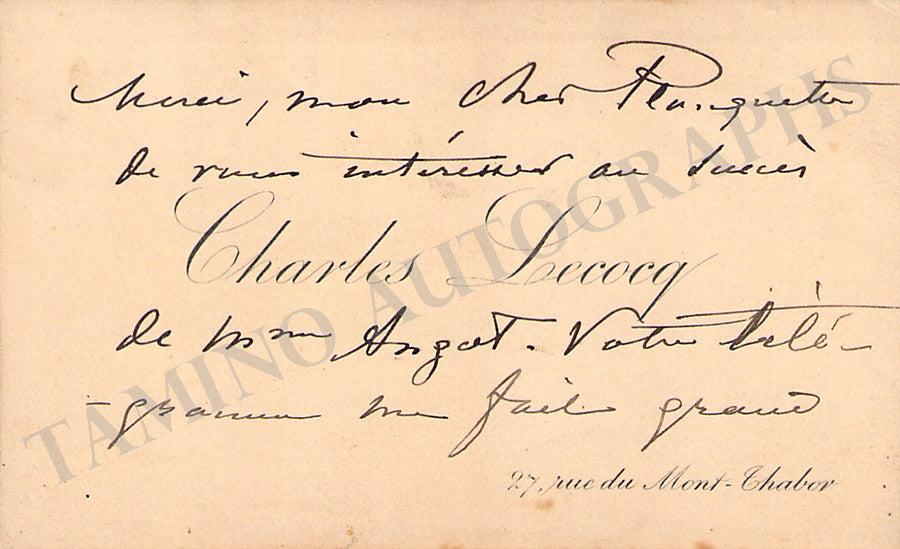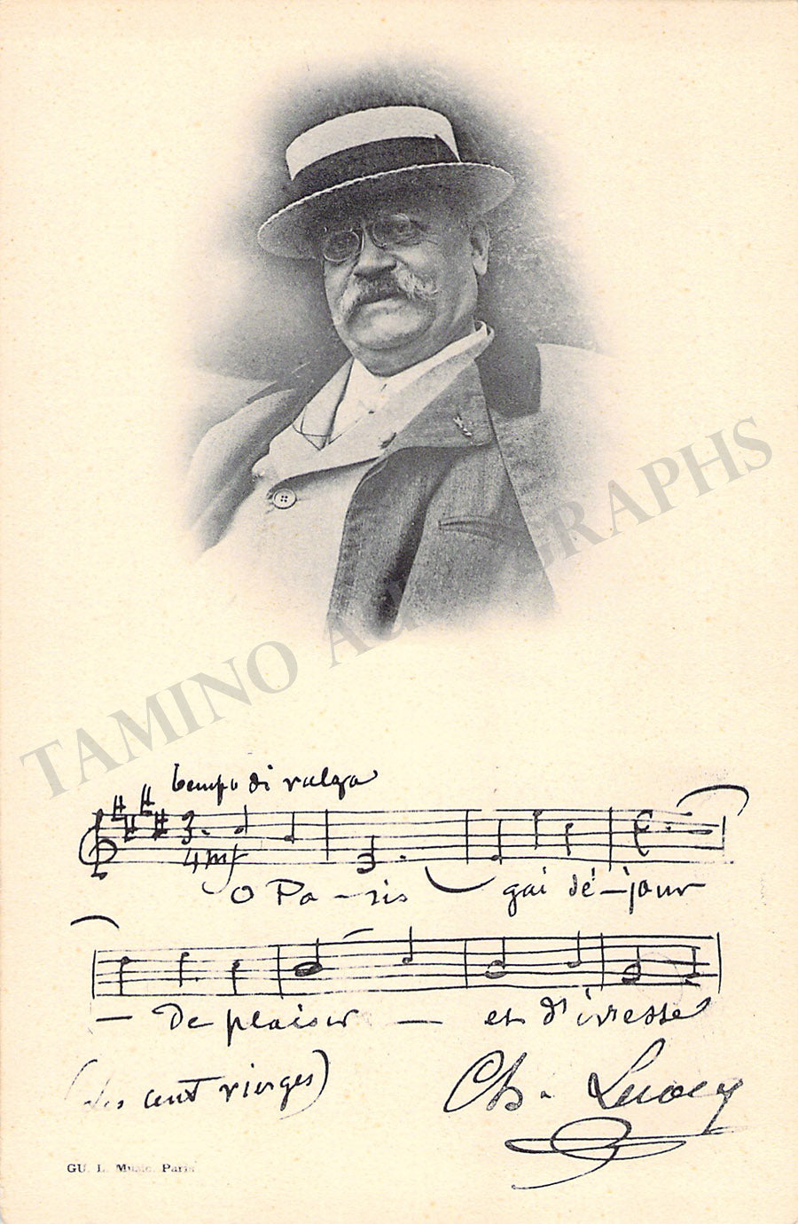 A. A lengthy autograph music quote signed by him and dated in Paris, 1912. Size is 10.3 x 6.6 inches, minor stains, folds, storage holes over the top, in good condition.